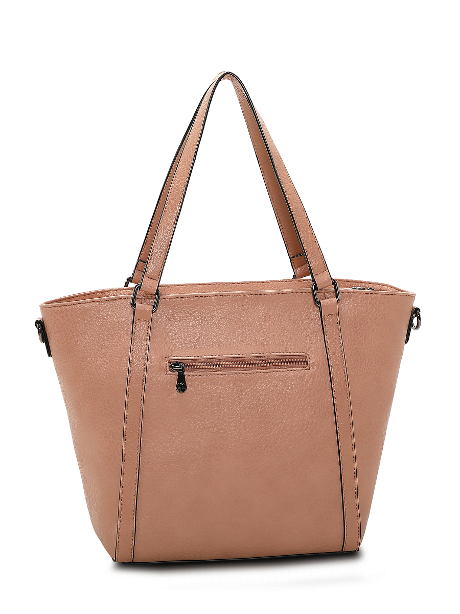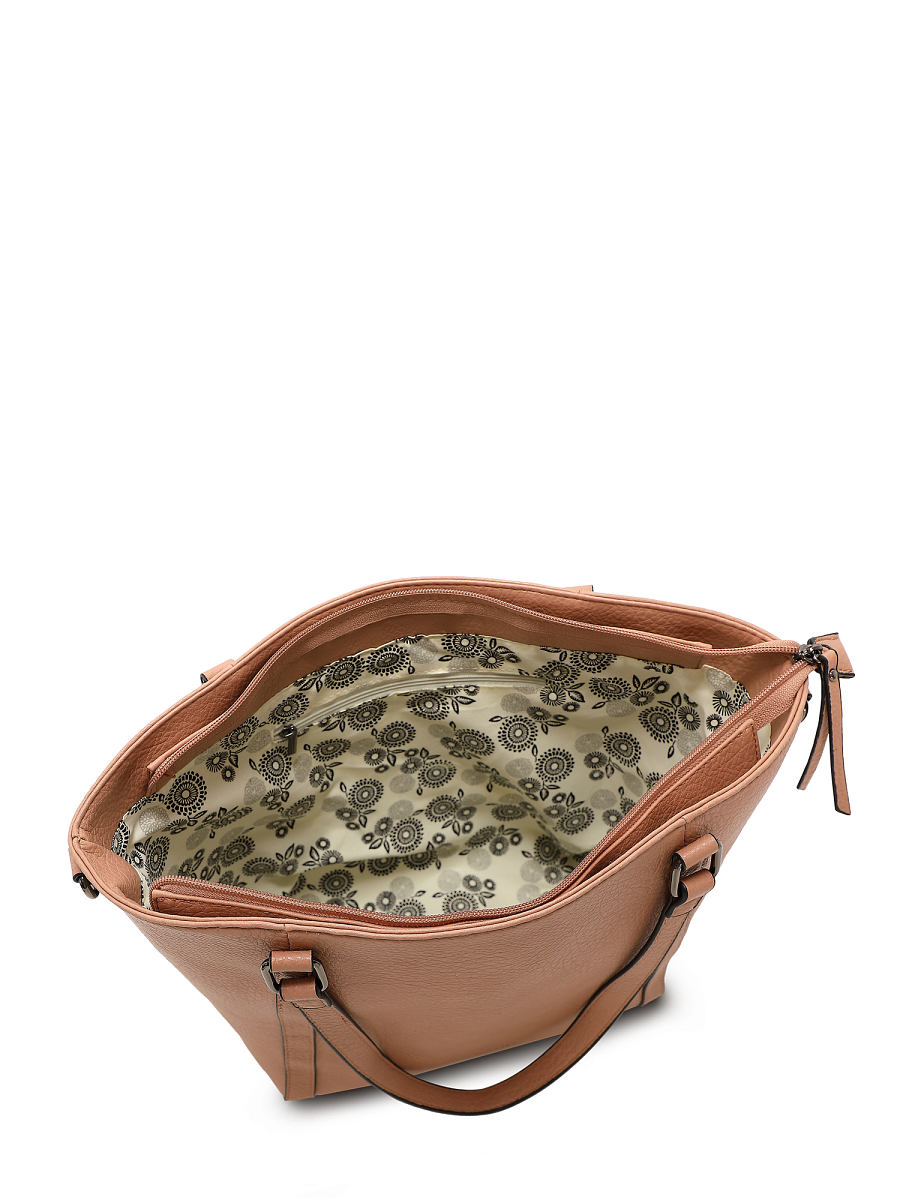 Romslig og stilfull weekendbag fra Lycke Oslo i elegant nude-farget skinnimitasjon med sporty nylonlook. Vesken har et stort hovedrom med bred glidelåsåpning som gjør det enkelt å få oversikt over innholdet. Den kan bæres både i hånden, på skulderen eller crossbody takket være den avtagbare og trinnløst justerbare nylonremmen. På baksiden finner du både et glidelåsfakk og et praktisk bånd slik at vesken enkelt kan festes på håndtaket til en koffert – perfekt for reiser. Innvendig har vesken en glidelåslomme og to åpne lommer som holder mobil og småting godt organisert.